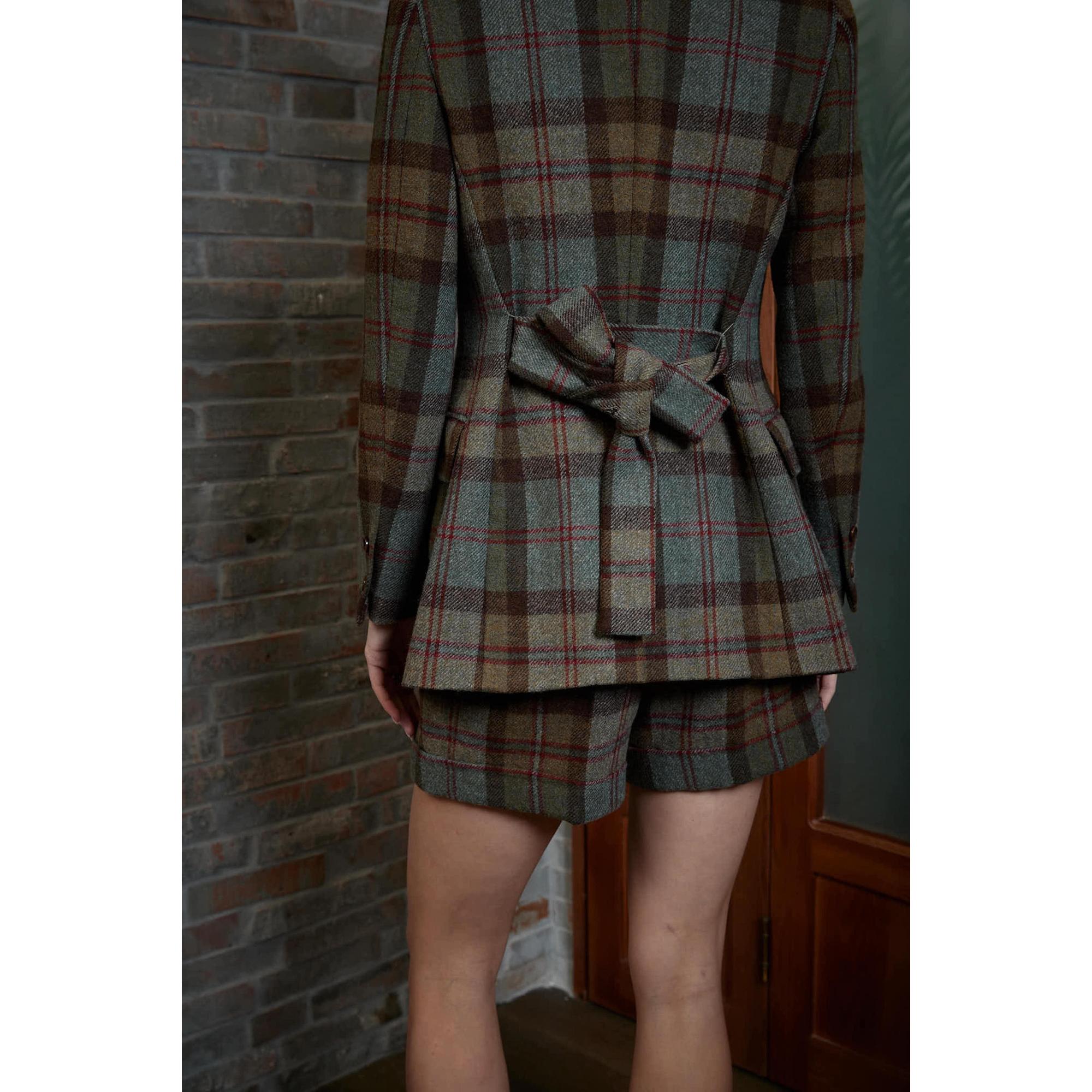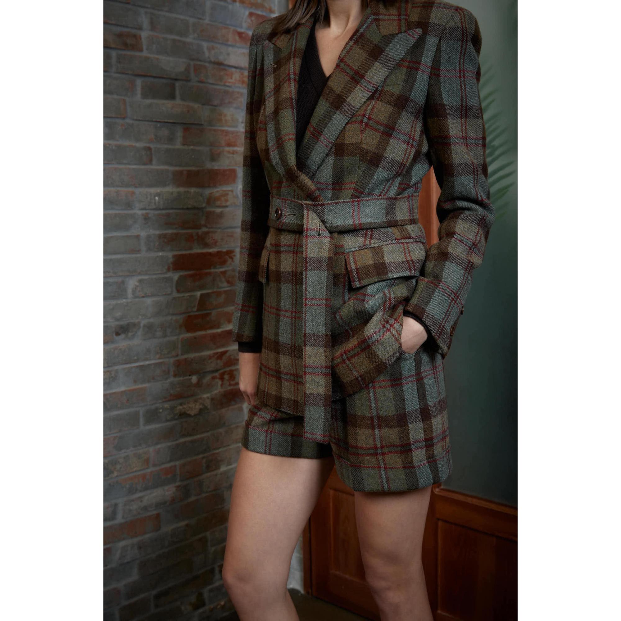 Women Almada Jacket - Double Breasted Tartan Jacket - Leaf Brown