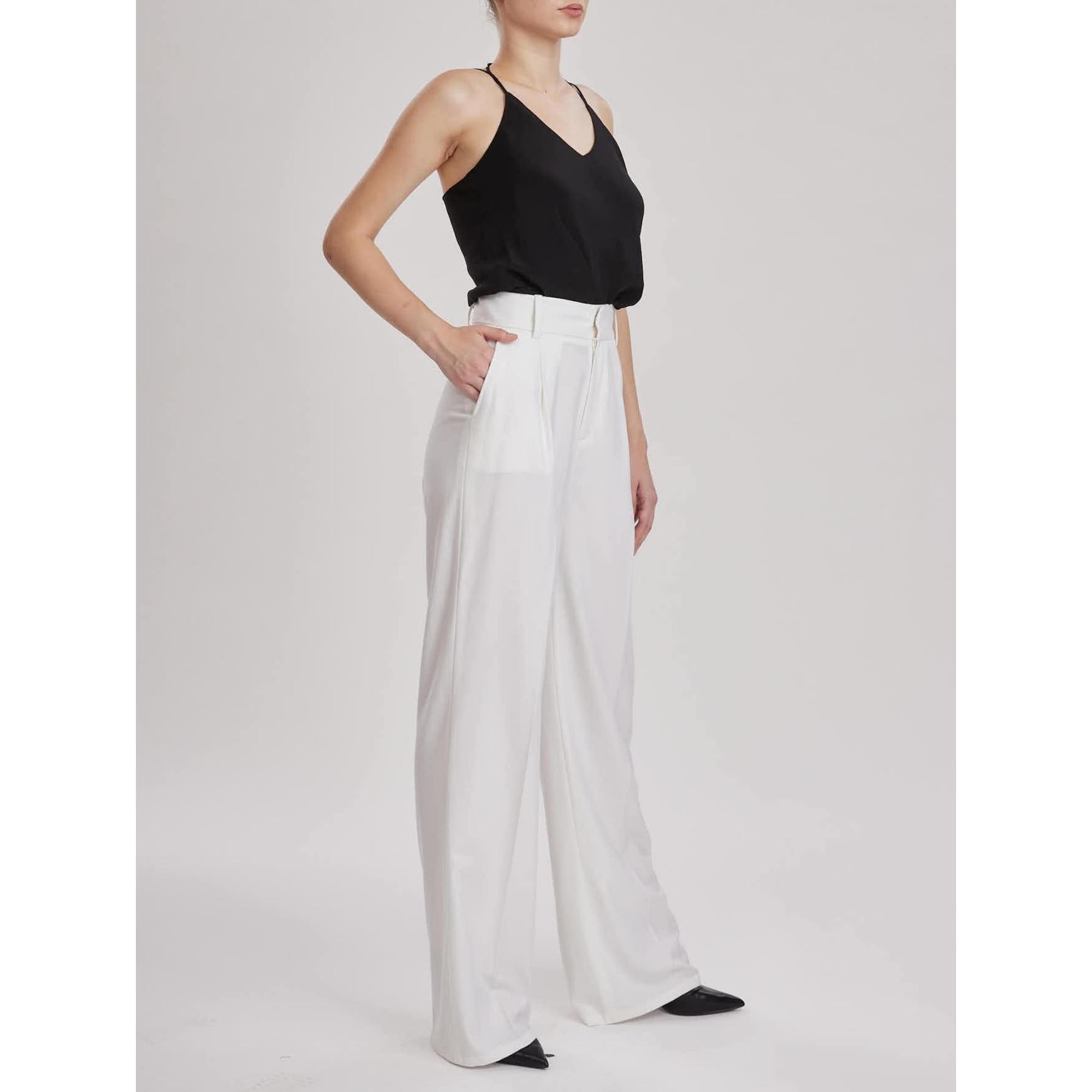 Women Almeria Trouser - Wide Leg, High Waisted Long Trousers in White Wool